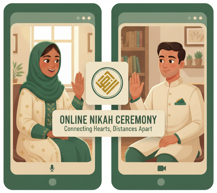 The Online Nikah is a virtual marriage ceremony conducted in full accordance with Islamic teachings and Shariah principles. It offers the same spiritual value and authenticity as a traditional Nikah — but with the added ease, comfort, and accessibility of modern technology. In an Online Nikah, both the bride and groom agree upon the Mahr (a gift or financial offering from the groom to the bride) before the ceremony. During the session, each party verbally declares “I accept” in the presence of their Wali (guardian of the bride) and two Muslim male witnesses, fulfilling the core requirements of an Islamic marriage. The entire process takes place through a secure video call, led by a certified Imam who ensures every step aligns with the Sunnah and all Islamic legal standards. While traditional Nikah requires physical presence, our Online Nikah allows couples — no matter where they are in the world — to unite in a legitimate, Shariah-compliant, and beautifully convenient way.